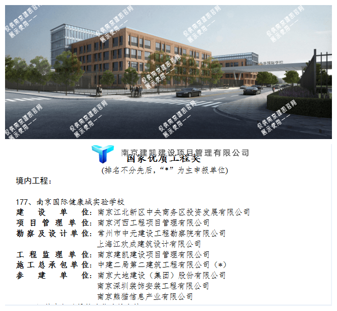 熱烈祝賀我司南京國(guó)家健康城實(shí)驗(yàn)學(xué)校項(xiàng)目監(jiān)理部榮獲“國(guó)家優(yōu)質(zhì)工程獎(jiǎng)”