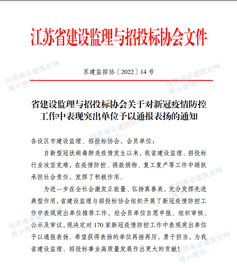 恭喜我司榮獲省建設監(jiān)理與招投標協(xié)會授予《新冠疫情防控工作中表現(xiàn)突出單位的通報表揚》