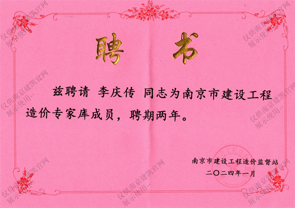 恭喜我司李慶傳同志入選“南京市建設(shè)工程造價(jià)專家?guī)斐蓡T”