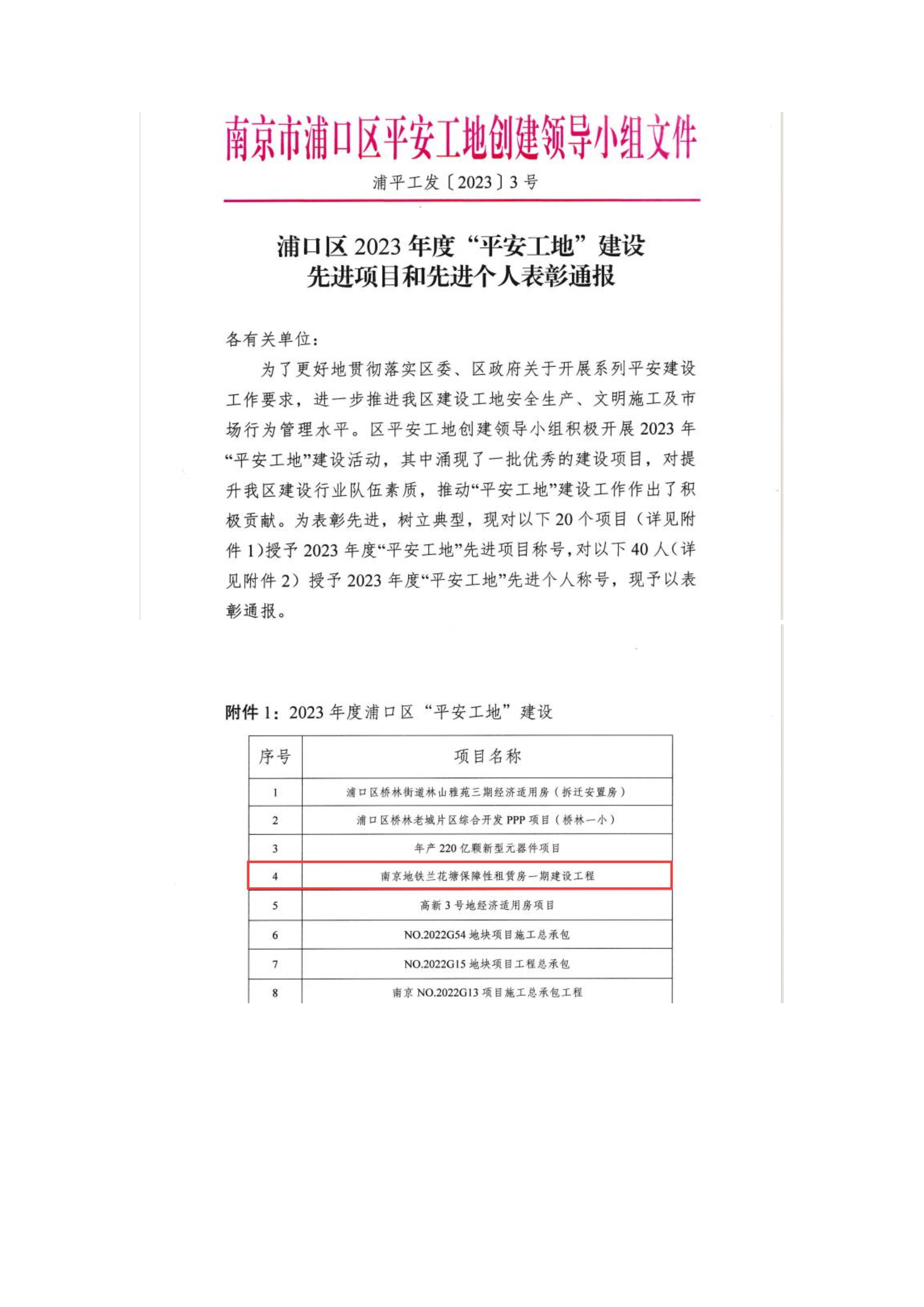 南京地鐵蘭花塘保障性租貨房一期建設(shè)工程榮獲“浦口區(qū)2023年度“平安工地”建設(shè)先進(jìn)項目”