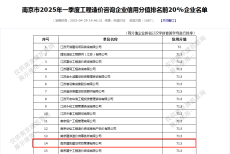 恭喜我司入選“南京市2025年一季度工程造價咨詢企業(yè)信用分值排名前20%企業(yè)名單”